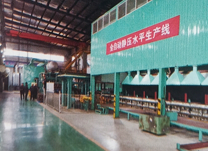 我公司現擁有三條生產線,日本東久全自動水平生產線、山東濰坊凱隆全自動靜壓水平生產線和上海紅雀樹脂砂線。